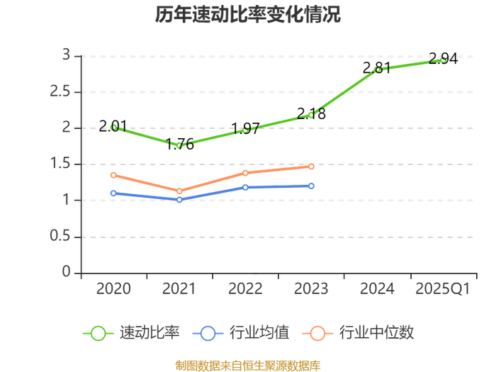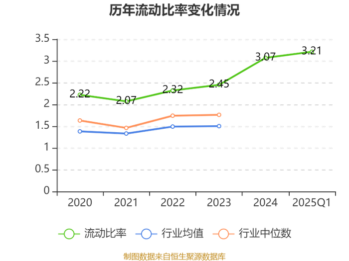 2025年第一季度,公司流动比率为3.21,速动比率为2.94。