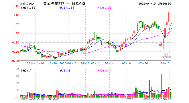 4月15日黄金股票ETF(517400)份额减少200.00万份,最新份额9579.20万份,最新规模1.06亿元