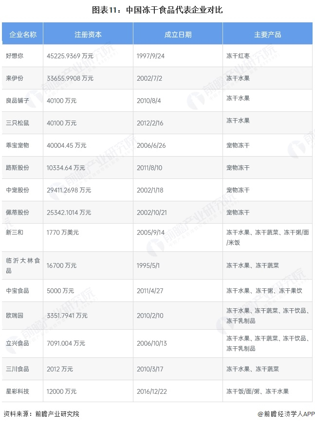 我国冻干食品行业的主要企业有好想你、来伊份、良品铺子等,大部分企业主要布局冻干水果和冻干蔬菜产品,少部分企业如新三和、星彩科技等布局冻干粥/面/米饭等冻干方便食品。