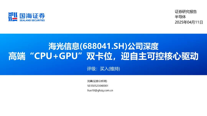 证券研究报告《海光信息(688041.SH)公司深度报告:高端“CPU+GPU”双卡位,迎自主可控核心驱动》