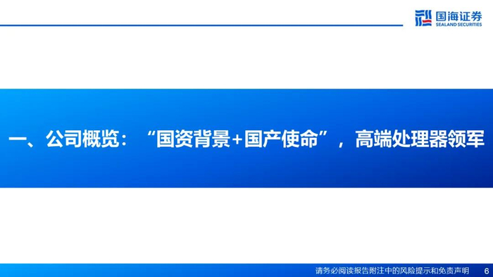 一、公司概览:“国资背景+国产使命”,高端处理器领军