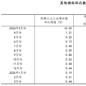 (2)根据季节调整模型自动修正结果,对近一年来各期国内生产总值、规模以上工业增加值、固定资产投资(不含农户)、社会消费品零售总额环比增速进行修订。修订结果及2025年一季度GDP环比数据、2025年3月份其他指标环比数据如下: