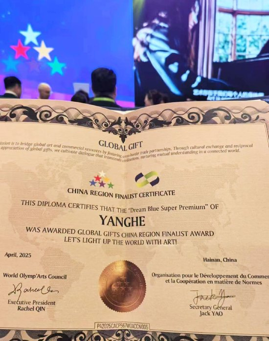 4月16日,近日在第五届中国国际消费品博览会期间,由国际奥艺委员会(WOAC)和贸易发展与标准合作组织(ODCCN)共同发起的《全球好礼》中国区入围颁奖仪式在海南举办。洋河股份旗下梦之蓝手工班入围。