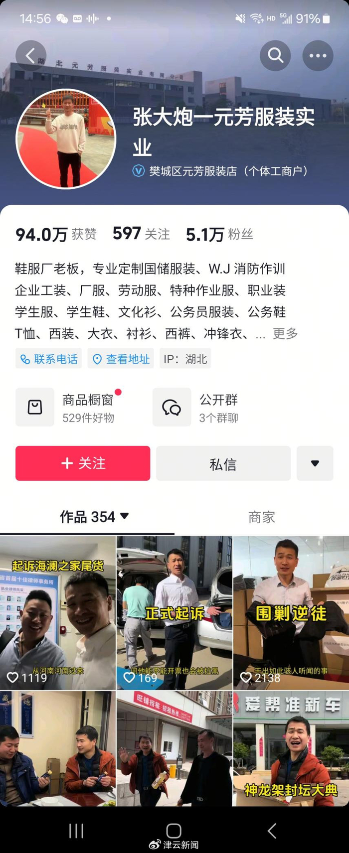 霞湖世家负责人周扬告诉津云记者,网络博主张明通过“张大炮-元芳服饰实业”等相关账号对公司长期进行“网暴”和“诋毁”,导致经营受损。公司已向市场监管部门举报,截至目前襄阳市樊城区市场监督管理局已经立案。