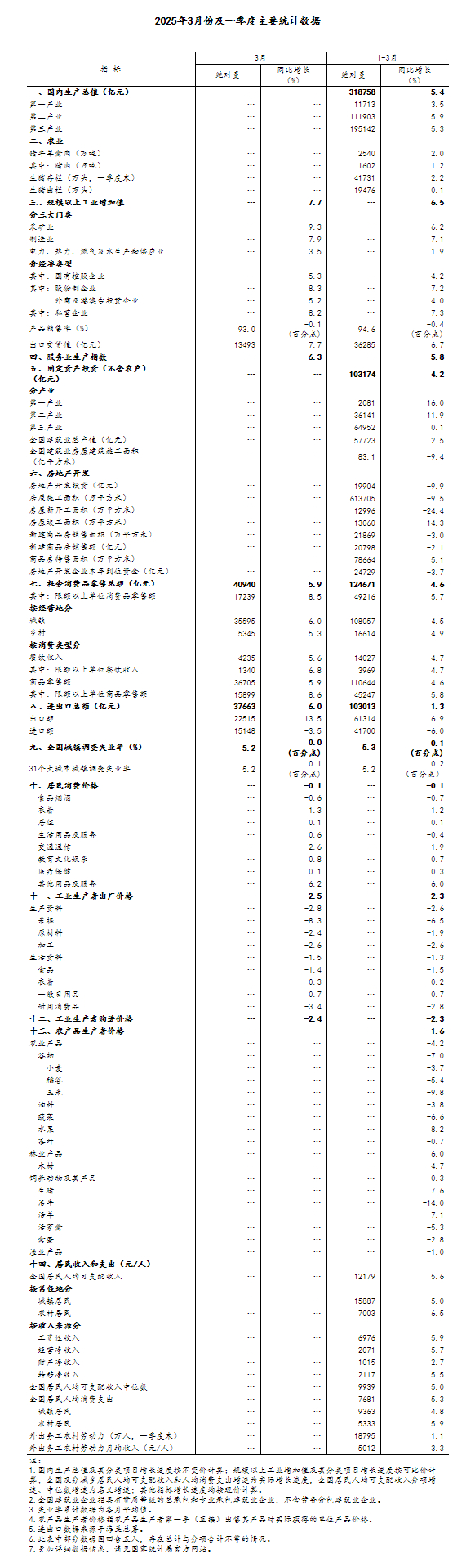 国家统计局公布2025年一季度国民经济数据