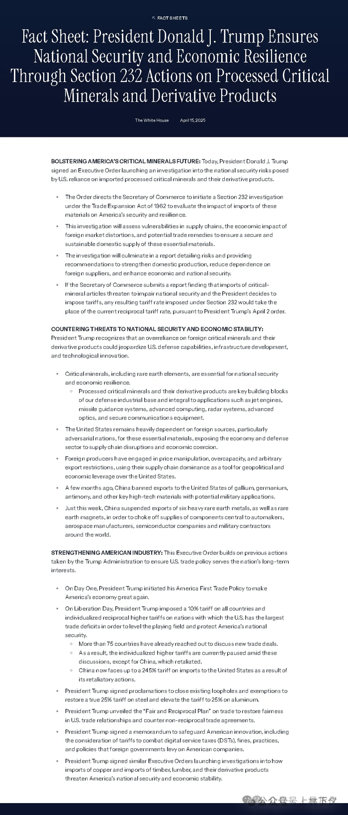 中国产品最高税率245%/鱿鱼170%/美国白宫发布关税说明书