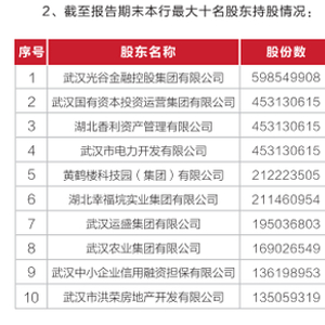 如若此次增资扩股完成,武汉金控集团持股数量将超过光谷金控集团,或成为该行的第一大股东。