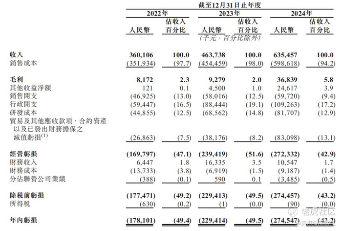 不过,公司仍处于亏损阶段。在2022年、2023年及2024年,公司分别录得净亏损人民币178.1百万元、人民币229.4百万元及人民币274.5百万元。净亏损的扩大主要是由于多方面因素,包括在产品开发及商业化方面的大量前期投资,为提高市场渗透率而采取的渗透定价策略,以及原材料及零部件成本的增加等。尽管公司收入增长迅速,但目前尚未能实现盈利平衡,不过随着规模效应的逐步显现和成本控制措施的实施,未来盈利空间值得期待。