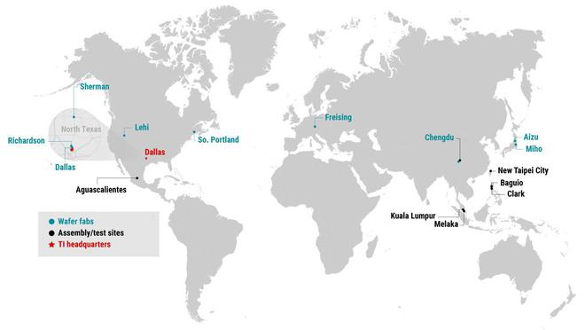 (德州仪器全球生产基地分布)