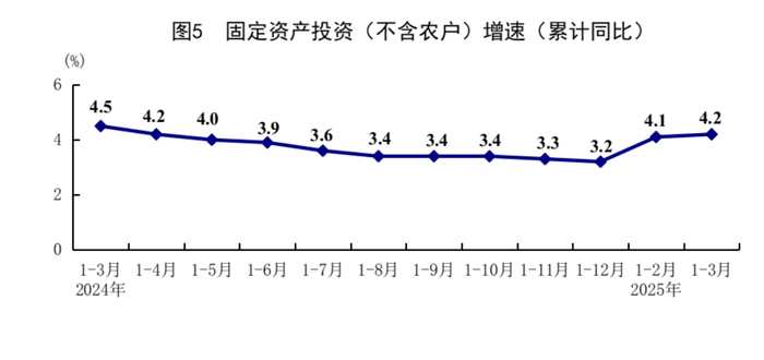一季度固定资产投资同比增长4.2%,好于预期