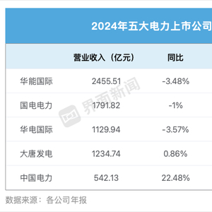 至此,五大发电集团旗下核心上市公司均发布了2024年财报,营业收入增减不一,但均实现了净利同比增加,共赚取了约340亿元,较上年五家公司全年的净利总和增加了近五成。