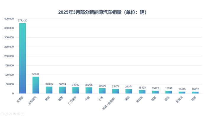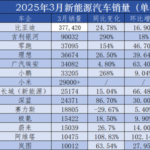 近日,国内多家新能源车企发布2025年3月销量成绩。