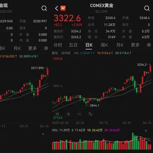 北京时间4月16日,金价涨势迅猛,又创新高。Wind数据显示,国际金价当日迎来史上首次站上3300美元/盎司,截至17时20分,伦敦现货黄金盘中最高价超3317美元/盎司,COMEX(纽约商品交易所)黄金期货盘中最高价超3334美元/盎司,日内涨幅均约2.5%。