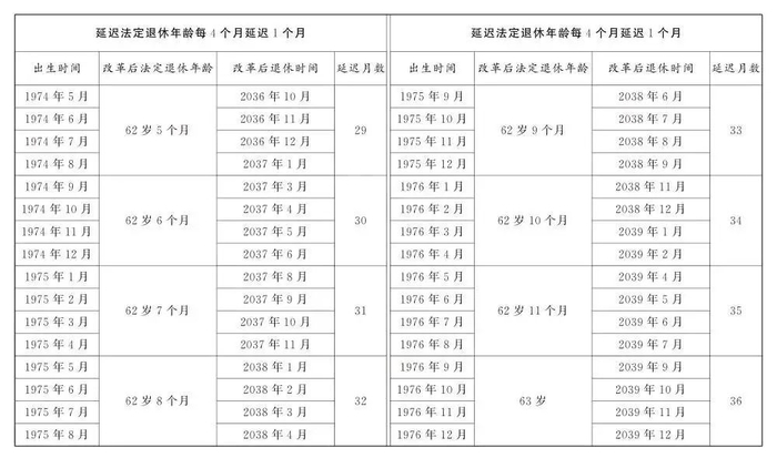女性干部:55岁延迟至58岁,每隔4个月,延后一个月。
