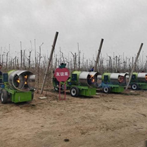 4月11日,甘肃庆阳市西峰区后官寨庆丰示范基地固定暖风式防霜机作业展示。甘肃省气象局供图