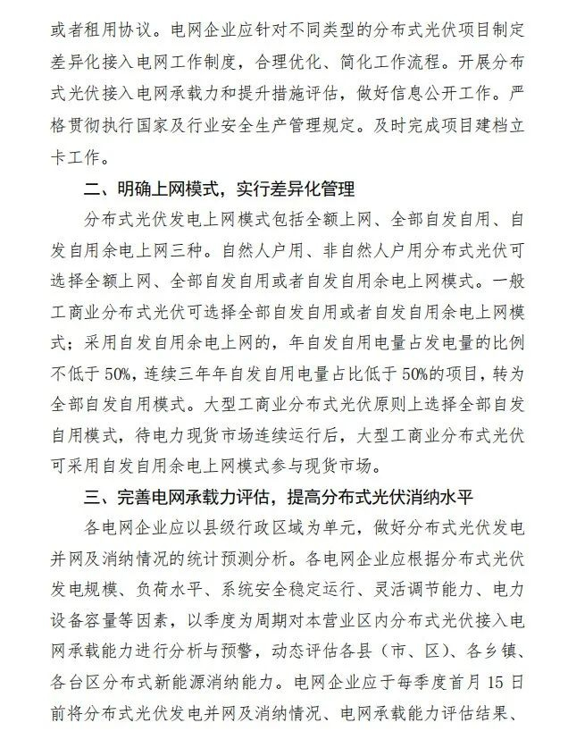 一般工商业分布式光伏可选择全部自发自用或者自发自用余电上网模式;采用自发自用余电上网的,年自发自用电量占发电量的比例不低于50%连续三年年自发自用电量占比低于50%的项目,转为全部自发自用模式