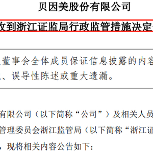 号称A股“奶粉第一股”的贝因美,又被处罚了。4月16日晚,贝因美发布公告称,公司及相关人员、公司控股股东于近日收到中国证监会浙江监管局(以下简称浙江证监局)下发的行政监管措施决定书。
