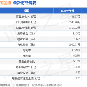 据证券之星公开数据整理,近期宝丽迪(300905)发布2024年年报。截至本报告期末,公司营业总收入13.63亿元,同比上升13.86%,归母净利润1.14亿元,同比上升14.61%。按单季度数据看,第四季度营业总收入3.52亿元,同比下降5.56%,第四季度归母净利润3315.53万元,同比上升31.22%。本报告期宝丽迪公司应收账款体量较大,当期应收账款占最新年报归母净利润比达159.66%。