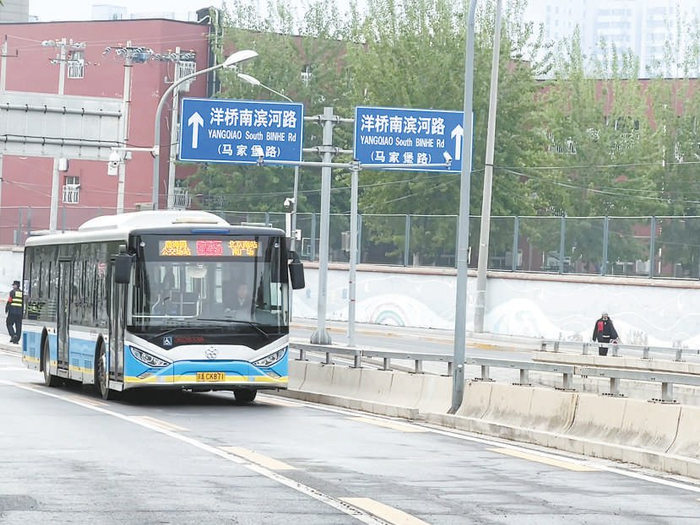 随着北京南站路重新调整地下停车场西南入口的交通流线,治疗“血栓”终于有了条件,“大车走滨河道、小车走南站路”的分流疏解方案得到各单位一致认可,各方决定,恢复通行此前封闭的洋桥南滨河路并设置公交专用道。