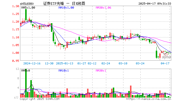 证券ETF先锋(516980)开盘跌0.50%,重仓股东方财富跌0.59%,中信证券跌0.40%