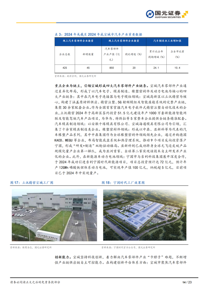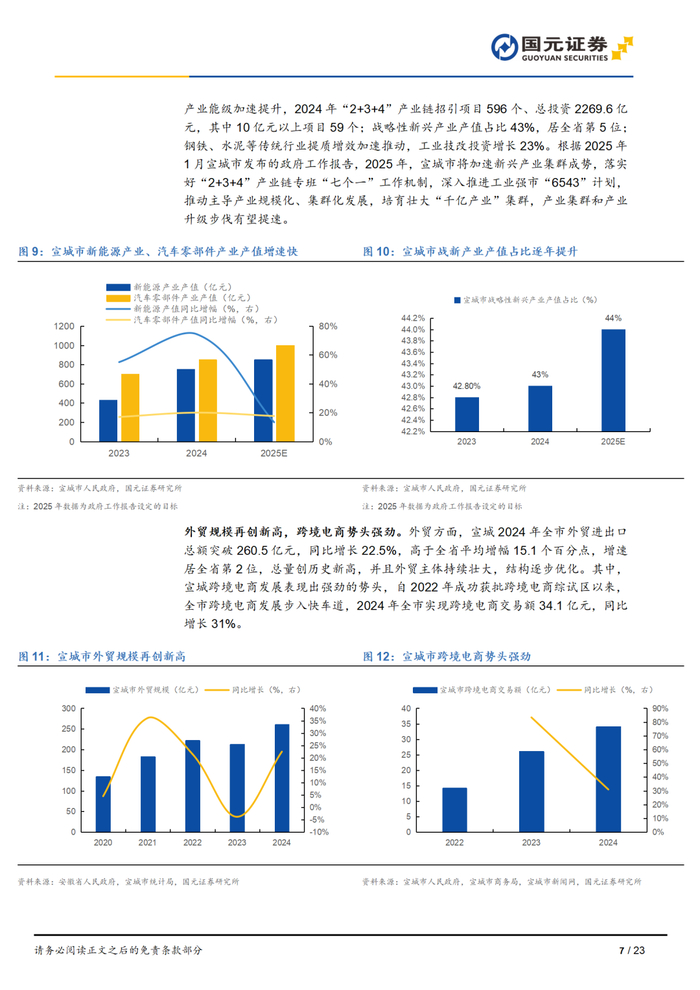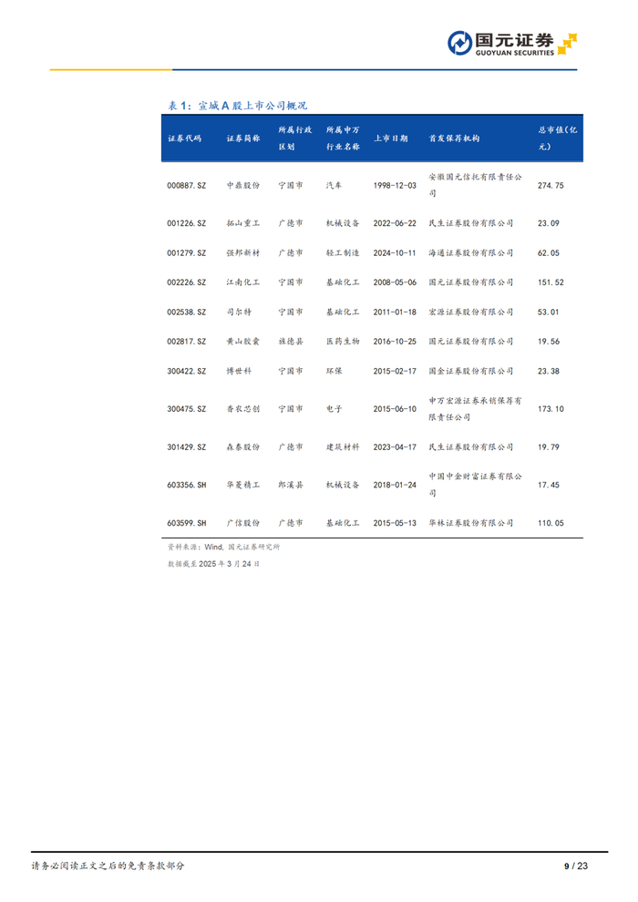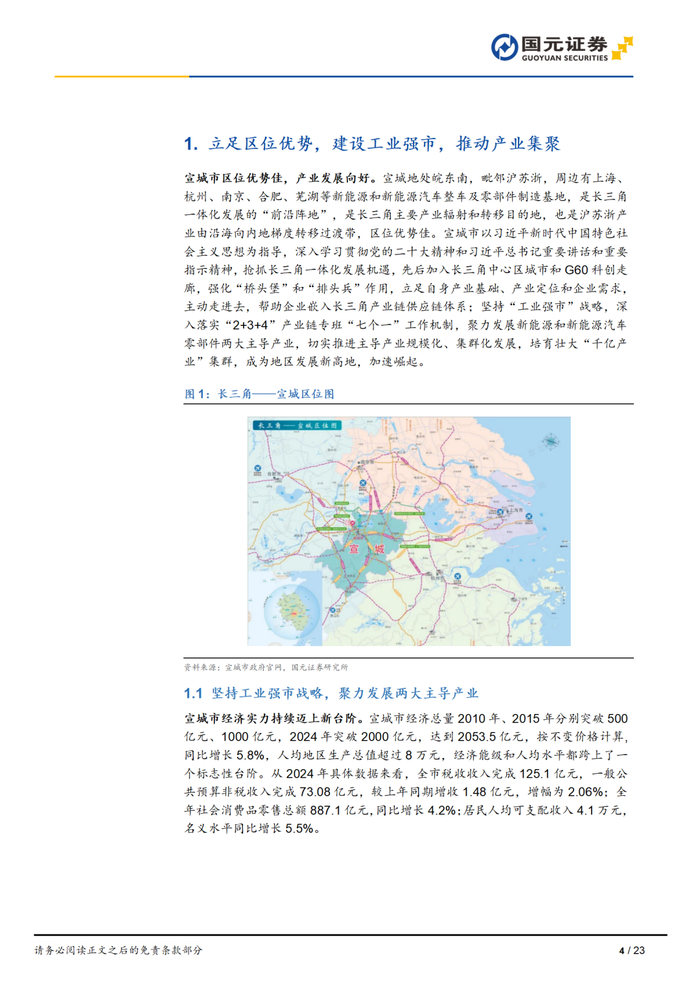 本报告摘自国元证券2025年4月16日已发布的《融金聚力兴智造,九曲水阳竞奔流——“深耕安徽”系列专题报告之宣城篇》查看原文,具体报告及分析内容请详见报告。若因对报告的摘编等产生歧义,应以报告发布当日的完整内容为准。