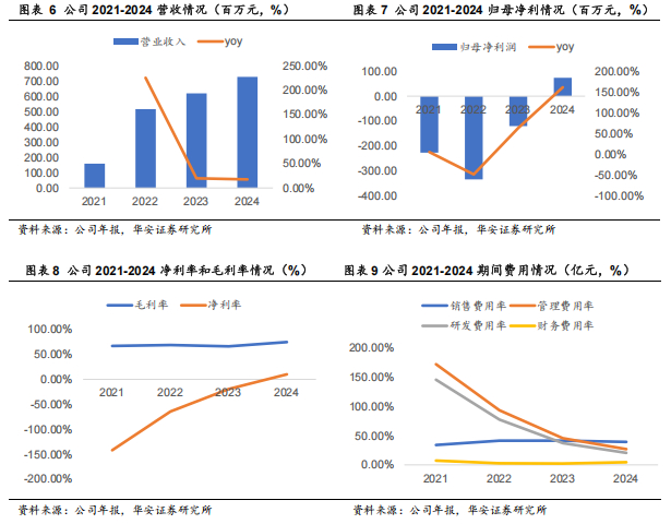 重要里程碑: 2023年公司在产品研发和市场拓展方面取得了显著成果,营收增长的同时成本降低,为公司的盈利奠定了基础。2024年公司成功实现全年盈利,这一成绩标志着公司在商业化进程中取得了重要突破。多款产品成功上市并实现销售增长,产品商业化矩阵不断丰富。
