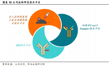 公司平台化技术持续输出潜力管线,目前临床前在研的品种中已有多款有竞争力的靶点及新技术产品,包括两款双抗以及一款双抗ADC。