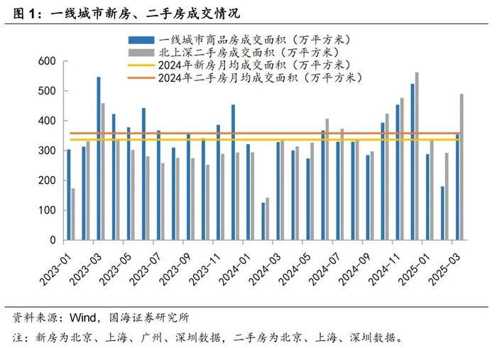 一线城市高品质新房韧性十足。一线城市中优质新房项目持续热销,如上海壹号院二批次2025年1月开盘,据项目宣传海报显示,当日销售66亿元;北京海淀功德寺两项目2025年3月开盘,据项目宣传海报显示,开盘成交超150亿元。两项目均为均价超10万/㎡的改善项目,凭借不可复制的区位溢价、高品质的产品、核心资产抗通胀预期的金融避险属性等优势实现热销。