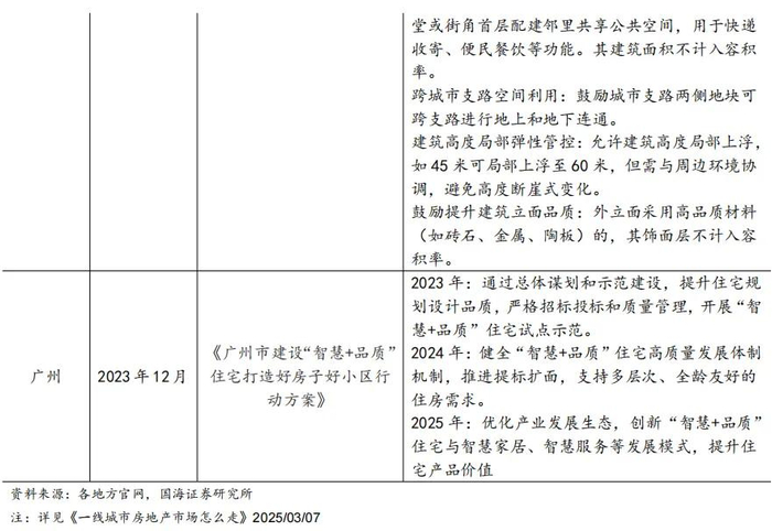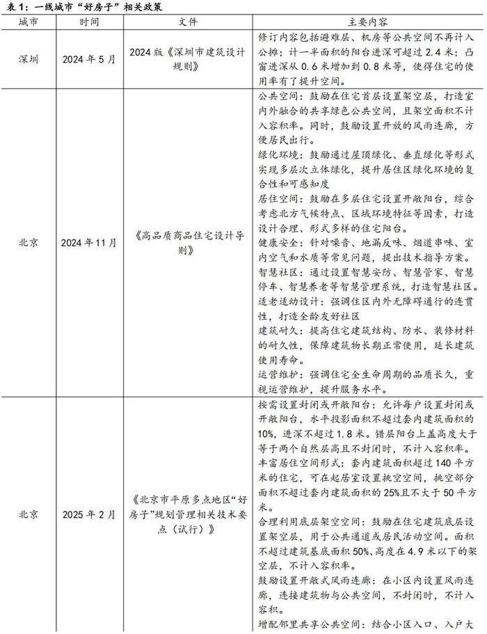 2024年深圳市出台新版《建筑设计规则》,修订了包括避难层、机房等公共空间不再计入公摊;计一半面积的阳台进深可超过2.4米;凸窗进深从0.6米增加到0.8米等内容,使得住宅的使用率有了提升空间,居住体验更加舒适;北京市推出《高品质商品住宅设计导则》和《平原多点地区“好房子”规划管理技术要点(试行)》,优化了居住舒适度,为购房者提供了更优质的选择;广州启动“智慧+品质”住宅建设试点,要求开发企业从安全与耐久、舒适与健康、节能与环保等六个方面达到一定标准。