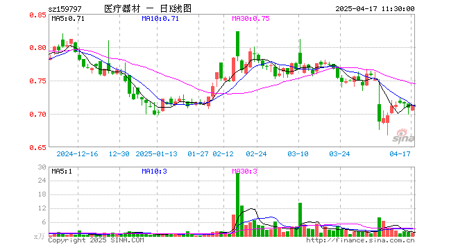 医疗器械ETF基金(159797)涨0.42%,半日成交额87.34万元