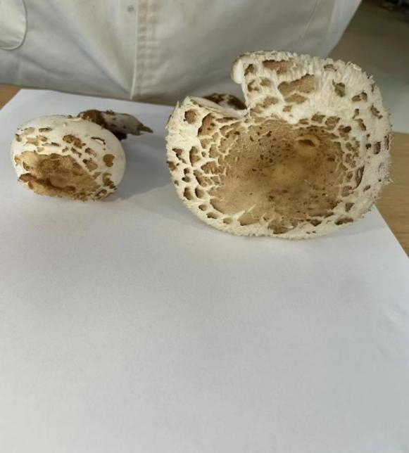 剧毒灰花纹鹅膏、裂皮鹅膏均为灰白色,与可食用口蘑极相似。