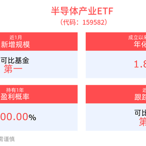 规模方面,半导体产业ETF近1月规模增长651.00万元,实现显著增长,新增规模位居可比基金1/2。