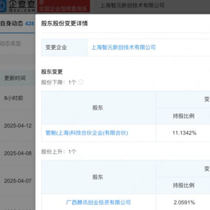 3月24日,上海智元新创技术有限公司发生工商变更,原股东临港新片区道禾前沿碳中禾(上海)私募投资基金合伙企业(有限合伙)、南京高榕五期一号股权投资合伙企业(有限合伙)等退出,新增广西腾讯创业投资有限公司、卧龙电驱(600580.SH)等为股东。