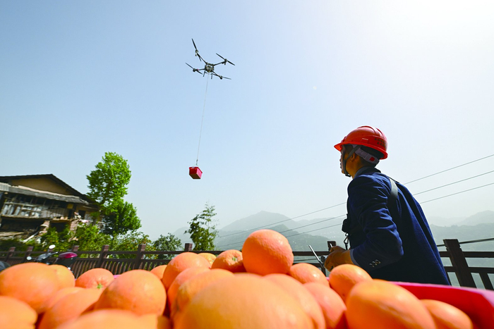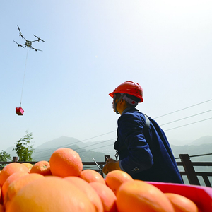 时下正值湖北省宜昌市秭归县伦晚脐橙采收旺季。在归州镇彭家坡村,种植户可以手持遥控器,操纵载重60公斤的农用无人机从山坡的橙园腾空而起,几分钟时间就将鲜果投送至位于山脚的物流集散点。