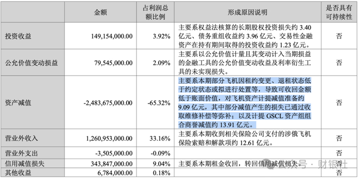 资产减值计提规模陡增揭示资产质量恶化风险,24.8亿元的资产减值损失中,13.91亿元来自集装箱租赁业务商誉减值,9.09亿元源于飞机资产减值,合计占利润总额的65.32%。