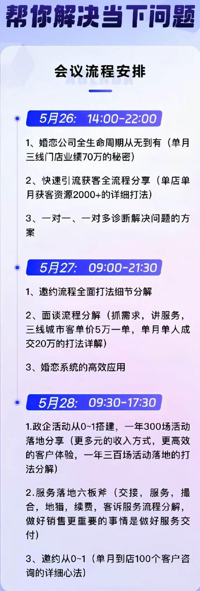 在社交平台上,控诉婚介机构的帖子,常有协助退费的“法律机构”出现。小可说:“他们不是律师,就提一些投诉建议,收费两三千元。”记者尝试添加了几个“法律机构”,最离谱的是其中一个。对方在个人页面披露婚介机构套路、话术,声称可协助退费。在私信中,他表示最近没空接新活,但能安排培训课程。没想到,培训竟是婚介机构经营指南。从获客到签单等技巧一应俱全,帮助学员达成“三线城市客单价5万”的销售成绩。让人怀疑,此人与婚介机构有关系。