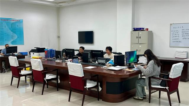 4月16日,工作人员在赛事集中工作区紧锣密鼓工作中。