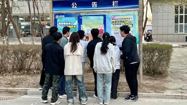 4月16日,赤峰学院的学生们仔细阅读志愿者招募海报。