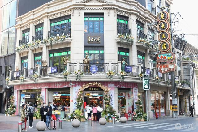 这几天,南京东路上三阳南货店的门面已经换上新装——朵朵粉嫩的白玉兰装点了门头,洋气又海派。