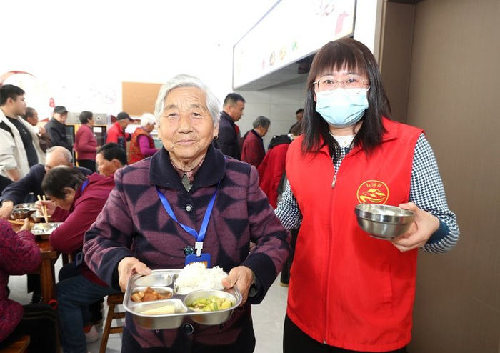 4月16日,江苏省淮安市金湖县银涂镇红湖村老人助餐点正式向60周岁以上的村民开放,宽敞干净的就餐环境、营养可口的饭菜、实实在在的助餐惠民福利,让200余名老人在“家门口”吃出“幸福味”。