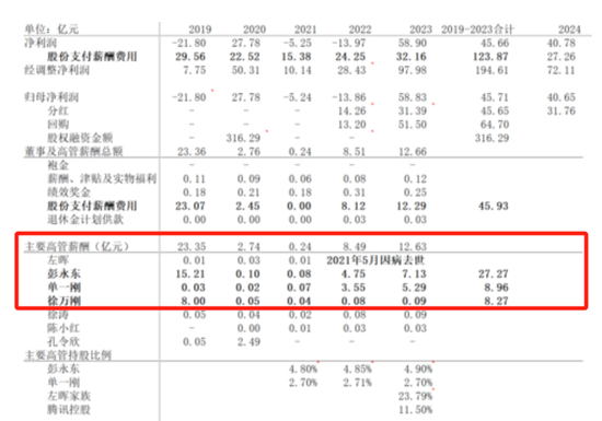 彭永东和单一刚的股权是“受限制股份”,也就是说在刚刚授予的时候是无法买卖、也无权收取分红的。在2023年5月,也就是股份发放一年以后,彭和单的50%被授予股份限制被取消,也就是说50%的股份可以开始交易,也可以收取分红。