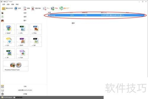 7、 格式工厂是一款特殊的软件,导入文件后需选中再点击开始。