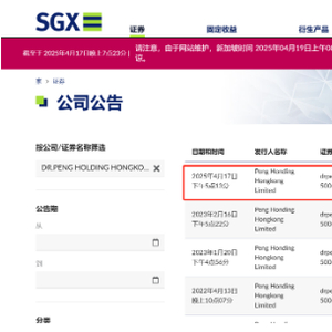 4月17日,鹏博士电信传媒集团股份有限公司(证券简称:*ST鹏博,代码:600804)全资子公司鹏博士投资控股香港有限公司(以下简称“鹏博士香港”)在新加坡交易所发布公告称,由鹏博士香港发行、*ST鹏博担保的美元债券持有人表决通过了两项特别决议。