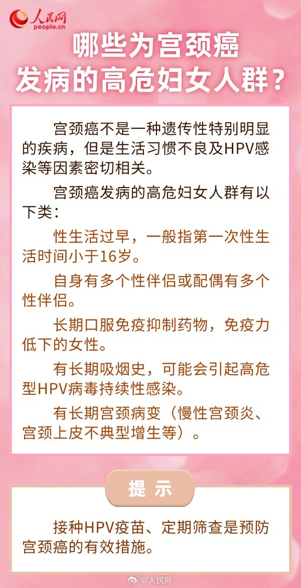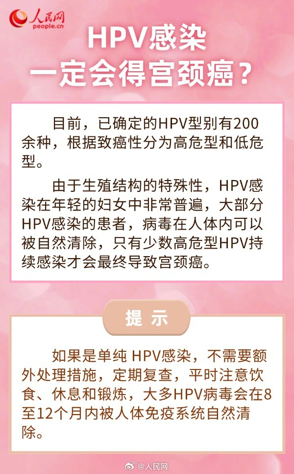 宫颈癌是全球女性最常见的恶性肿瘤之一,其发病趋势越来越年轻化。几乎所有的宫颈癌病例都与HPV(人乳头瘤病毒)感染有关。HPV感染一定会得宫颈癌?#HPV疫苗应该怎么选#?戳图了解↓↓(人民网)全国肿瘤防治宣传周 | 关于宫颈癌防治 你是否也关心这6个问题?