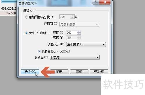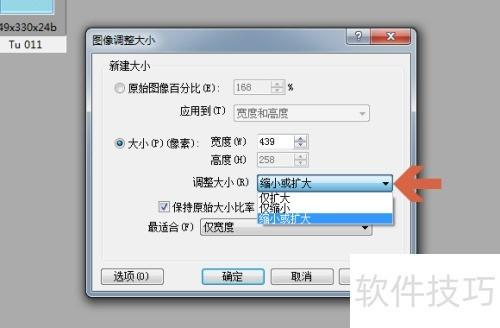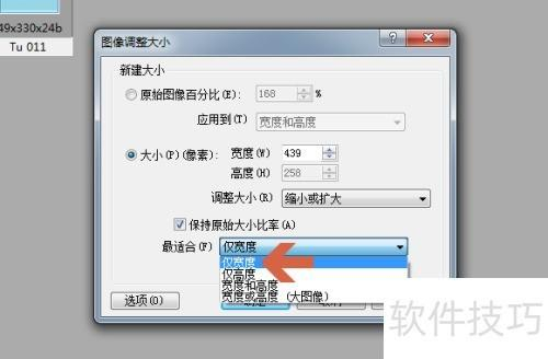 7、 由于需将图片宽度统一,因此最适合选项应选仅调整宽度。