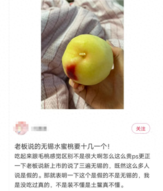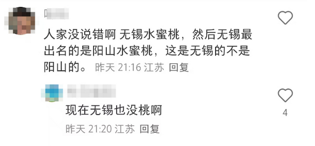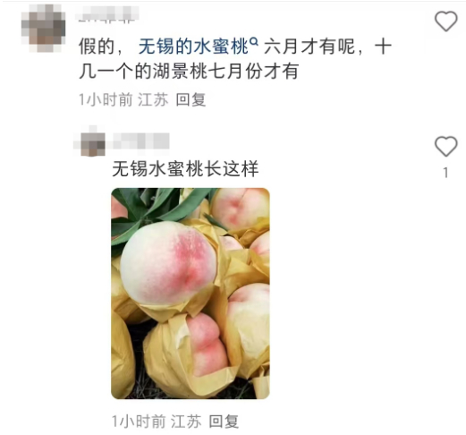 这位网友昨天发帖后,评论区很多懂行的网友回复“这是假的无锡水蜜桃”。
