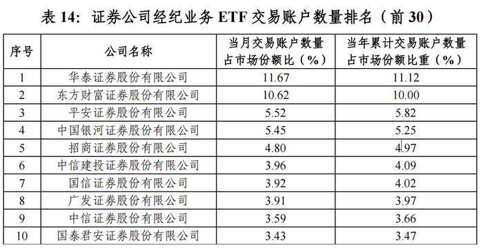 华泰、东方财富沪市ETF交易账户数量继续领先