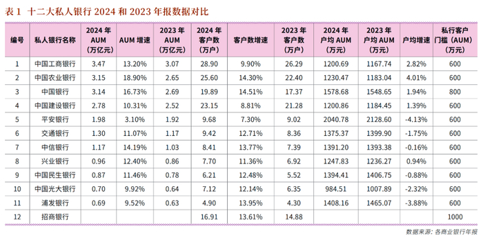 截至2024年末,中国十二大私人银行客户总数达167.89万户,同比增长11.87%,净增17.82万户。