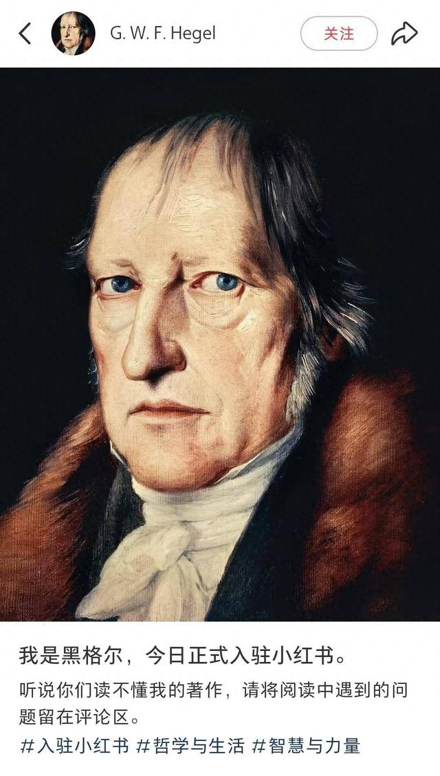 4月18日,“复活哲学家入驻小红书”登上站内热搜,“我是黑格尔,今天正式入驻小红书,听说你们读不懂我的著作,请将阅读中的问题留在评论区。”“我是雅克·拉康,我从语言学出发重新解读弗洛伊德。”“大家好我是弗洛伊德,在小红书看到了很多人对我的理论的解读和支持,谢谢各位!”这些个人账号顶着著名哲学家的名字和照片、肖像画,用第一人称发帖交流,像是和网友们玩起了角色扮演。