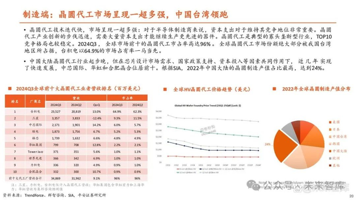 制造端:晶圆代工市场呈现一超多强,中国台湾领跑